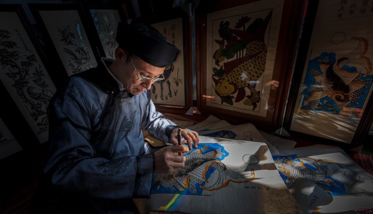 Located beside the Đuống River, Đông Hồ is the cradle of Vietnam’s best-known folk painting tradition. Each artwork is printed using wooden carving blocks, natural mineral colors, and dó paper made from tree bark.